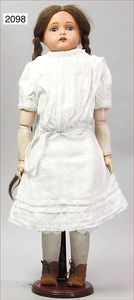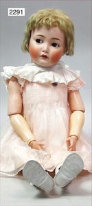 JDK Kestner 200, SoR, 1900 - 1905, Celluloid-Kurbelkopf, gefertigt von Schildkröt für Kestner, 40 cm, braune Schlafaugen, Augenmechanismus hakt manchmal ein wenig, off. Mund, kl. Druckstelle auf der Nasenspitze, schöner ausgeformter Gliederkörper, alte Mohairperücke wurde nicht entfernt, bitte Transportrisiko für den Augenmechanismus beachten, selten