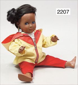 SCHILDKRÖT Manuela, Tortulon, 46 cm, blaue Schelmenaugen, Echthaarperücke wurde nicht entfernt, bitte Transportrisiko für den Augenmechanismus beachten, guter Zust., Orig.-Kleidung