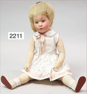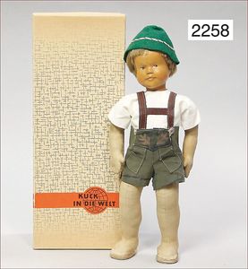 SCHILDKRÖT SiR, Modell Käthe Kruse T40, Celluloid-Drehkopf, blaue gem. Augen, geschl. Mund, gegliederte Arme und Beine, 38 cm, schöner Orig.-Zust.