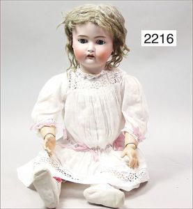 KÄMMER & REINHARDT Celluloid, Kurbelkopfpuppe, 54 cm, blaue Schelmenaugen, off. Mund, Zähne u. Zunge, Masse-Stehkörper, Perücke wurde nicht entfernt, bitte Transportrisiko für den Augenmechanismus beachten, alte Echthaarperücke