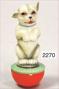 Zappelschwein, Blech, gemarkt Made in U.S.-Zone Germany, Uhrwerk intakt, bespielt, altersbed. an kl. Stellen etwas Farbabrieb, 11 cm