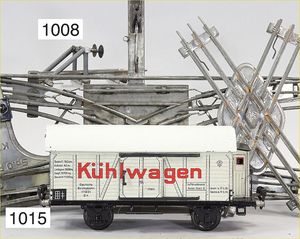 MÄRKLIN Spur 1, 1793, 2-achsiger Kühlwagen mit Bremserhaus, 27 cm, guter Zust., mit kl. Spielspuren, Quarzbereich am Rahmen wohl farbl. ausgebessert sonst orig.