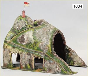 MÄRKLIN Uralt, Tunnel, mit Weg, Bank und Turm, Blech handlackiert, Durchgangshöhe 16 cm, bespielter Orig.-Zust.