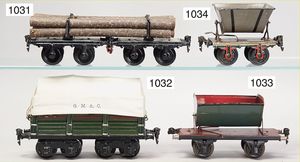MÄRKLIN Spur 1, 2-teiliger Langholzwagen, Uralt, altes Märklin-Zeichen, mit Stammholz beladen, bespielt