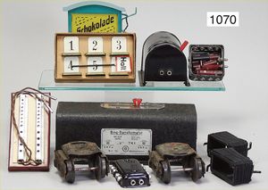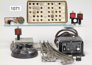 Fundkiste, Transformatoren, Lampen, einige Weichen, teils Elektromagnetisch, Bing und Karl Bub, Spur 0, elektr. Ausführung, Einsatz Schlusslicht, interessantes Konv., bitte besichtigen