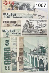 Konv. Prospekte und Kataloge, Bing Automatisches Kupplungssystem, Karl Bub Spielwarenfabrik Nürnberg, 1938, 1939, 1936, 1938, 1937, Bing Spielwaren-Prospekt DIN A 3, Bing elektr. Züge und Zubehör, 1. Nachtrag 1933, Bing Hauptkatalog 1931.., bitte besichtigen