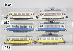 HAMO Strassenbahn, Triebwagen und Anhänger, elfenbein/gelbfarben, schwatze Zierlinien, Orig.-Stromabnehmer, Triebwagen-Dach möglicherw. farbl. überarbeitet, sonst guter bis sehr guter Zust.