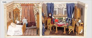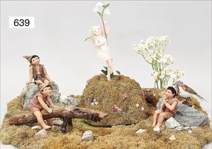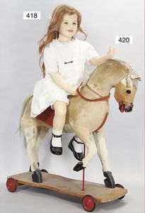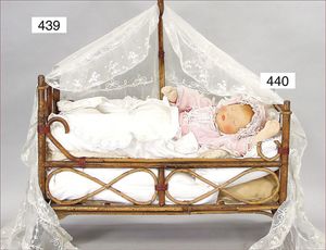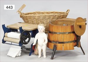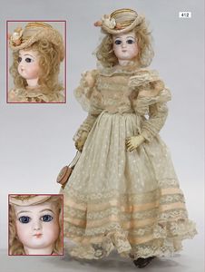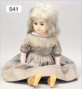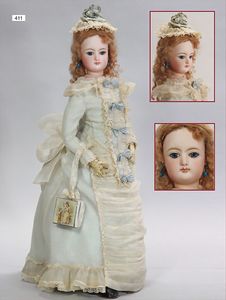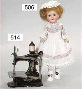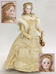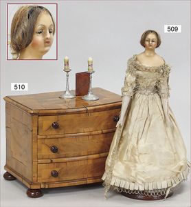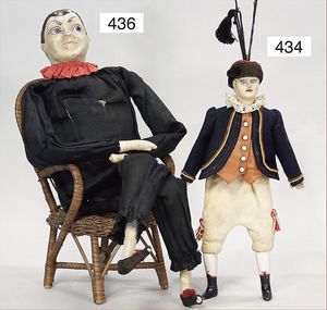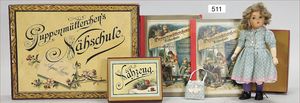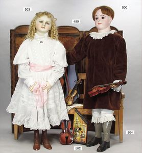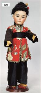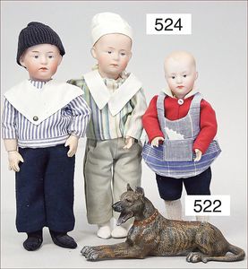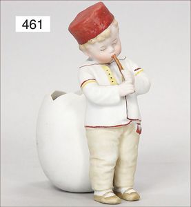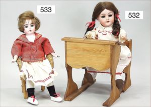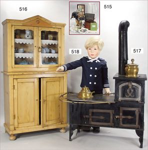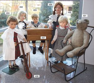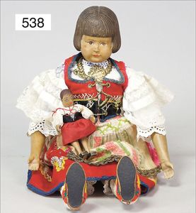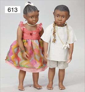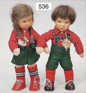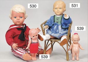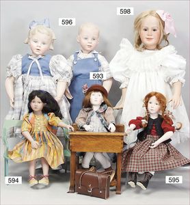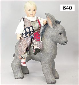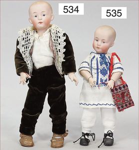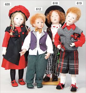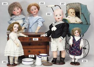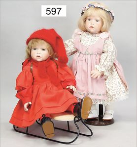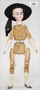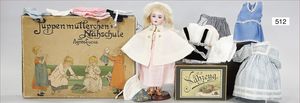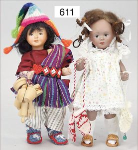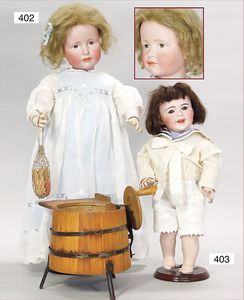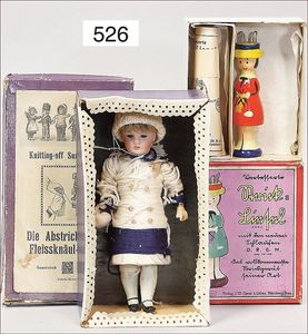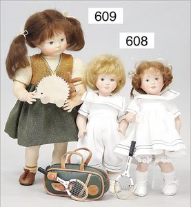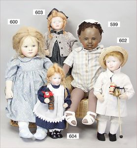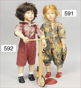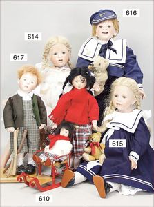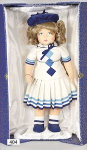 HILDEGART GÜNZEL Künstlerpuppe, Matrosenjunge, Porzellan, Wachs überzogen, Kurbelkopf, mit Brustblatt, limitierte Auflage, gemarkt, 1991, braune fest eingesetzte Glasaugen, off., Mund, Zähne, Echthaarperücke, eingesetzte Wimpern, Stoffkörper, Porzellan Unterarme und Unterschenkel, ebenfalls Wachs überzogen, 60 cm, orig., Kleidung