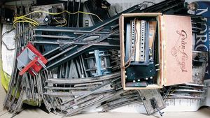 MÄRKLIN Spur 0, gr. Konv. Gleismaterial, elektr. Ausführung, in Kart., gerade, gebogen, 5 Elektroweichen, meist guter Zust., dazu 1 Kiste Anschlussgleise, Kleinteile, Ersatzteile