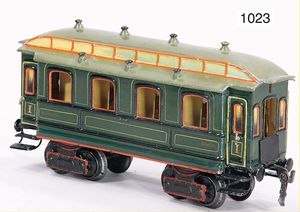 MÄRKLIN Kaiserwagen, Spur 1, mit Personenwagen-Einrichtung, 1841 K, grün, 4-achsig, 27 cm, restauriert