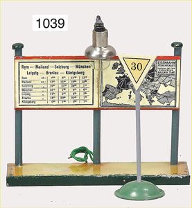 KIBRI 2-tlg. Fahrplanständer mit elektr. Beleuchtung, guter Zust., dazu 1 BING Warnschild, 30, Geschwindigkeitsanzeiger, mit Bleifuß, selten, guter Zust.