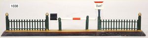 MÄRKLIN Schranke, mit Bahnwärterhaus u. Signalhalteschild, Grundplatte 18 x 10 cm, kl. altersbed. Lackfehler, guter Zust.