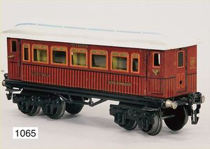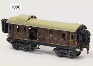 MÄRKLIN Spur 1, Uralt, Postwagen, Blech handlackiert, 29 cm, mit Inneneinrichtung, leichte Farbretuschen an den Ecken, sonst schöner Orig.-Zust.