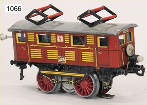 DISTLER Elektrolok, Spur 0, Blech lithogr., 18 cm, Fahrgestell neu befestigt, ein paar Veränderungen