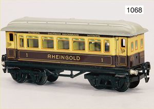 MÄRKLIN Spur 0, 1748, 4-achsiger Rheingoldwagen, 24 cm, Celluloid-Scheiben fehlen, mit Inneneinrichtung, bespielt, guter Zust.