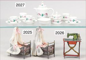 frühes, kl Puppenküchen Kaffeeservice, Rosenmotiv, Kannenhöhe 7 cm, Zuckerdose, Schale, 5 Tassen mit Untertasse, ohne Milchkanne