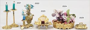 ERHARD & SÖHNE Messingblech, vergoldet, Puppenstubenleuchter, 6,5 cm, dazu passend 2 Vasen, ausgefallen