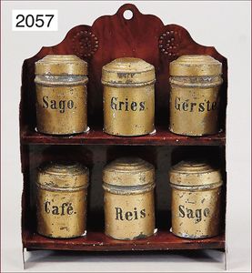 ROCK & GRANER Biberacher Blech-Gewürzregal, Blech handlackiert, 14 cm hoch, 11,5 cm breit, mit 6 Gewürzdosen, Lackfehler an den Gewürzdosen, sonst gut