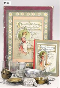 Hausmütterchens Kochschule für Spiel und Leben, von Anna Jäger, sehr schöner Orig.-Kart., mit bunt lithogr. Deckbild, mit Anleitung u. Zubehör, um 1900, sehr schöner Orig.-Zust.
