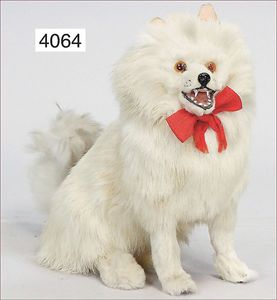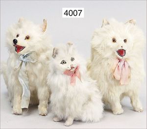kl. Echtfellhund, Spitz, mit langem buschigem Schwanz, 7 cm hoch, Glasaugen, off. Mund, ausmodellierte Zähne, stehend