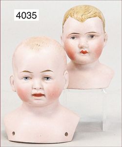 HERTEL, SCHWAB & CO Biskuitporzellan-Charakterpuppe, gemarkt 152, 21 cm, Kurbelkopf, blaue Schlafaugen, off.-geschl. Mund, stämmiger Stehkörper, beweglichen Armen und Beinen, Kopf passt nicht ganz in die Halspfanne, Riss seitlich, Perücke wurde nicht entfernt, (Transportrisiko für Augenmechanismus beachten)