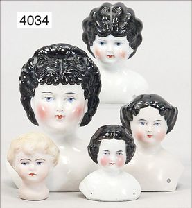 Biskuitporzellan-Kurbelkopf-Puppe, Vollkopf, blaue fest eingesetzte Glasaugen, geschl. Mund, Masse-Stehkörper, mit ausmodellierte Schuhe u. Strümpfen, Körper in gutem Zust., 18 cm, schöner Ausdruck
