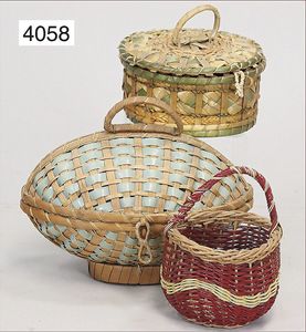 Konv. 3 Holzkörbchen, 1 runder Korb, Durchm. 10 cm, mit Deckel, 1 x mit Trageriemen, 10,5 cm hoch, 1 x eierförmiger Stroh-Korb mit minzfarbenen Einsätzen, 12 cm hoch, 18 cm breit