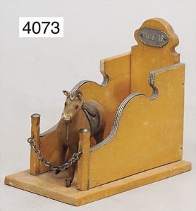 Holzstall, mit kl. Pferd, Masse, mit Echthaar überzogen, Länge 8 cm, Aufschrift des Stalles Vasistaf