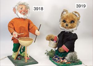 Automat, Fuchs, bewegl. Augen, off. Mund, bewegl. Kopf, 52 cm hoch, ausgefallen, mit Kleidung, auf Stein sitzend, Funktion nicht geprüft