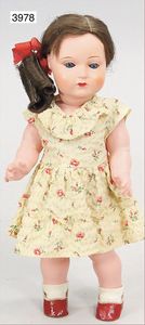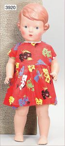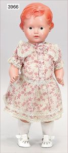 SCHILDKRÖT Erika, Celluloid, 45 cm, Kurbelkopf, braune fest eingesetzte Glasaugen, rote ausmodellierte Haare (seltene Farbe), guter Zust., alte Kleidung
