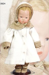 KÄTHE KRUSE Mädchen, 35 cm, Kunststoff-Kurbelkopf, braune gemalte Augen, Gesichtsbemalung etwas ausgeblichen, sonst guter Zust.