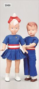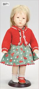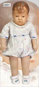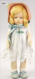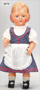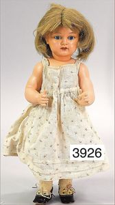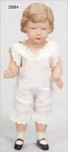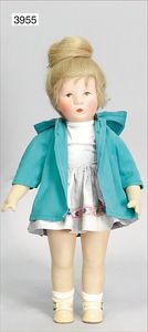 HAUSSER Bild Lilli, kl.. Größe, Gesicht in gutem Zust., blonde Haare etwas ausgekämmt, zitronenfarbener gelber Langarmpulli, dazu ¾ Hose, an der linken Hand 1 Daumen fehlt