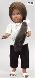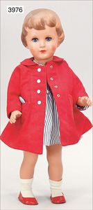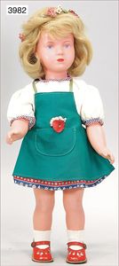 SCHILDKRÖT Inge, im Orig.-Kart., unbespielter Orig.-Zust., rot/metallic farbene Haare, fest eingesetzte blaue Glasaugen, Nackenmarkierung SiR, 42 cm, mit Orig.-Schildkröt Anhänger, kl. Linie am linken Knie