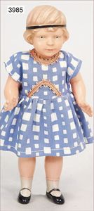 SCHILDKRÖT Mädchen Anneliese, Celluloid, 17 cm, fester Kopf, anmodelliertes Haarband, gemalte Augen, bewegl. Arme u. Beine, anmodellierte Schuhe u. Strümpfe, selten, guter Zust.