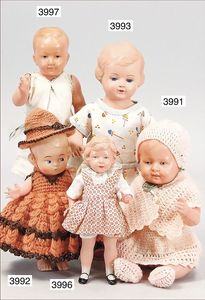 SCHILDKRÖT Typ Anneliese, Celluloid, 17 cm, stark ausmodellierte Haare, ohne Stirnband, fester Kopf, bewegl. Arme u. Beine, anmodellierte Schuhe u. Strümpfe, sehr guter Zust., absolut selten