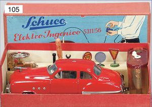 SCHUCO Ingenico 5311/56, rot, Blech, sehr guter Zust., 21,5 cm, im Orig.-Kart., mit Anleitung, Zubehör, Batteriekasten