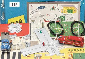 SCHUCO Varianto 3010, Deluxe, mit 2 Fahrzeugen u. automatischer Kreuzung, neuwertig, Orig.-Kart.