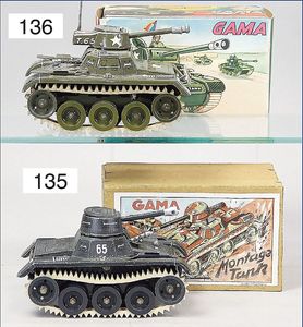 GAMA Tank, Blech lithogr., U.S.-Zone, 16 cm, neuwertig, Orig.-Kart., mit Anleitung u. Zubehör