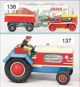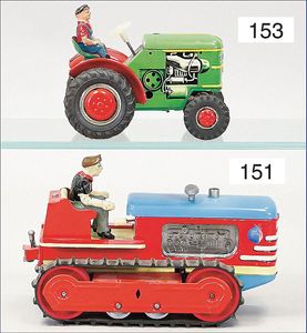 GAMA Traktor, Blech lithogr., Uhrwerkantrieb, 21 cm, guter Zust., kl. Kunststoffteil oben fehlt