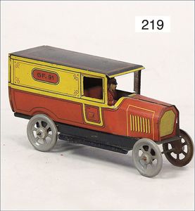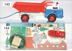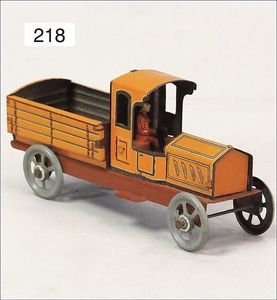 BLOMER & SCHÜLER Lastwagen mit Kippmechanismus, 35 cm, Blech, Uhrwerk intakt, bespielt, Lackfehler