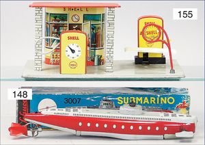 PN 900, Garage mit Limousine, Blech lithogr., 12,5 cm, neuwertig