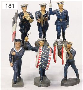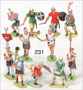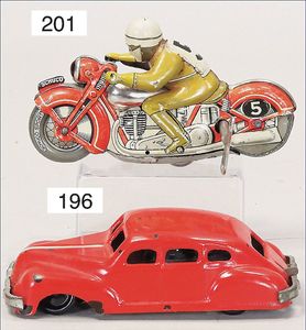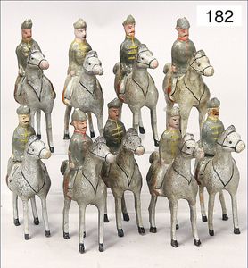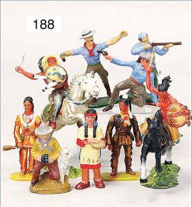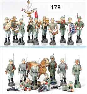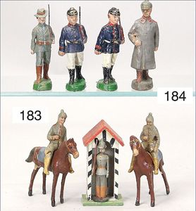 Konv. 8 Teile Eisenbahnfiguren, Lineol, 5 cm, Reisende, Schaffner, Zugpersonal, dazu 1 Motorrad, Zust. 2 -3