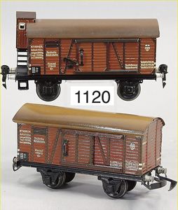 MÄRKLIN Spur 0, Konv. 2 Teile, 1791, gedeckter Güterwagen, mit Bremserhaus, 16,5 cm, 1791, gedeckter Güterwagen, braun, guter Zust.