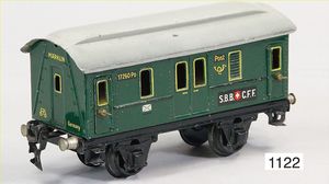 MÄRKLIN 1726 PO, Spur 0, Postwagen, 2-achsig, 16,5 cm, mit Abziehbild S.B.B., sehr guter Zust., selten