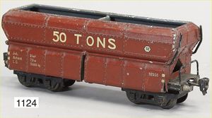 MÄRKLIN Spur 0, 1855, Schüttgutwagen, 50 tons, 4-achsig, 24 cm, bespielt, altersbed. Lackfehler