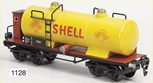 MÄRKLIN Spur 0, 1854, Tankwagen, Shell, 4-achsig, mit Bremserhaus, 24 cm, kl. Stellen farbl. ausgetupft
