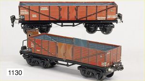 MÄRKLIN Spur 0, 2 Teile, 1851, 4-achsiger Hochbordwagen, mit Schenktür u. Bremserhaus, 24 cm, guter Zust., kl. Spielspuren, 1849, Hochbordwagen, 4-achsig, 24 cm, guter Zust.