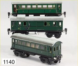 MÄRKLIN Spur 0, Konv. 3-tlg., 1754, Gepäckwagen, 24 cm, dazu 2 x 1751, im Orig.-Kart., Personenwagen 2. Klasse, grün, 24 cm, guter bis sehr guter Zust.