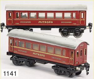 MÄRKLIN Spur 0, Mitropa-Schafwagen, 1753, 1752, Mitropa-Speisewagen, rot, 24 cm, im Orig.-Kart., beide guter Zust., mit nur geringen Spielspuren