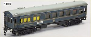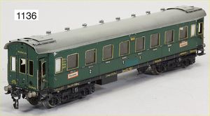 MÄRKLIN Spur 0, 1941, 4-achsiger Personenwagen, 1. u. 2. Klasse, grün, 40 cm, Schilder nicht komplett, bespielt, kl. Lackfehler